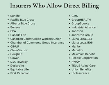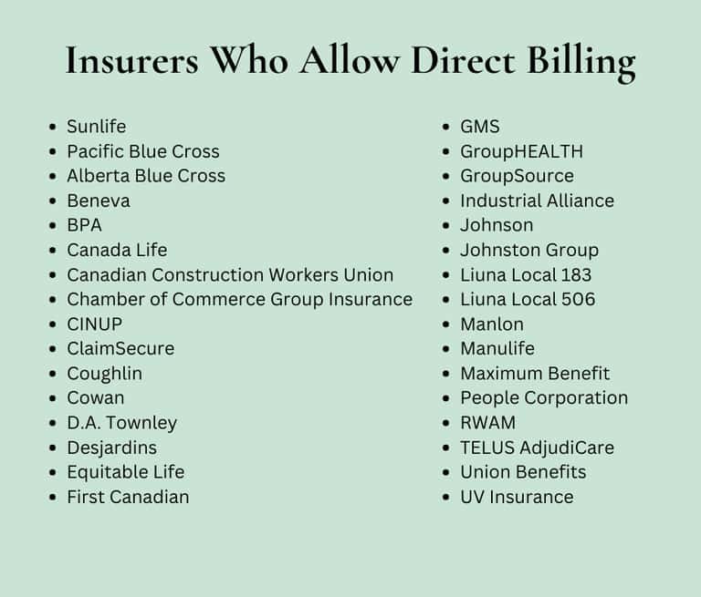 Naturopathic care is covered by most extended health care plans, either completely or in part. Direct billing is available through many insurers. Check this list to see if your insurer is set up with the clinic for direct billing.
